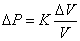 Likewise, to compress a gas by a relative volume ΔV/V, a pressure proportional to the bulk modulus K is required. Higher K corresponds to a less compressible gas. The relative volume change is used rather than absolute volume change because unlike solid springs, gases expand to fill their container – a 1L change in a 100L container is small; a 1L change in a 2L container is huge.